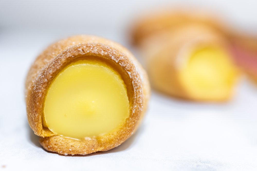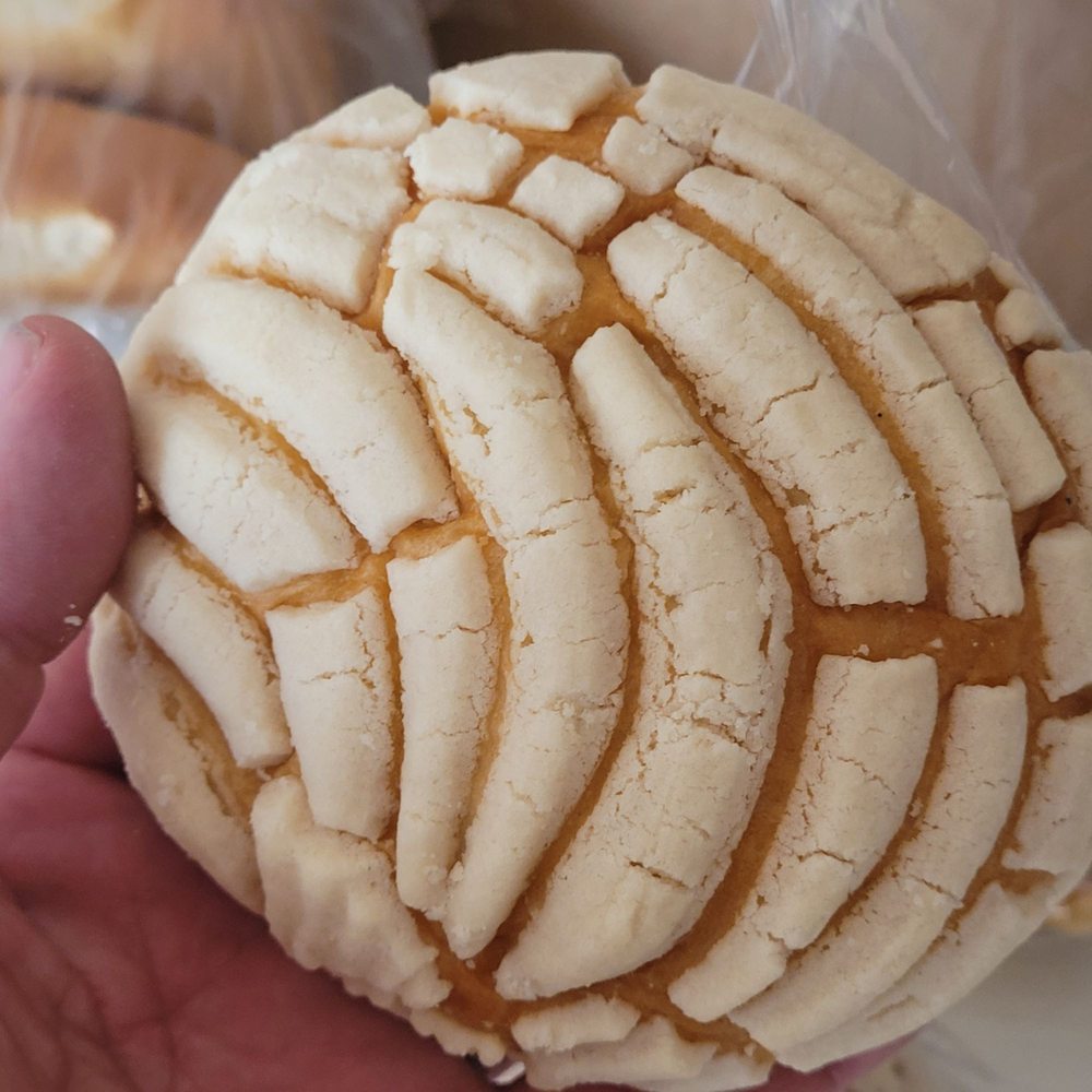 Soft and chewy inside with a rim of crunchiness a top with yellow concha paste.